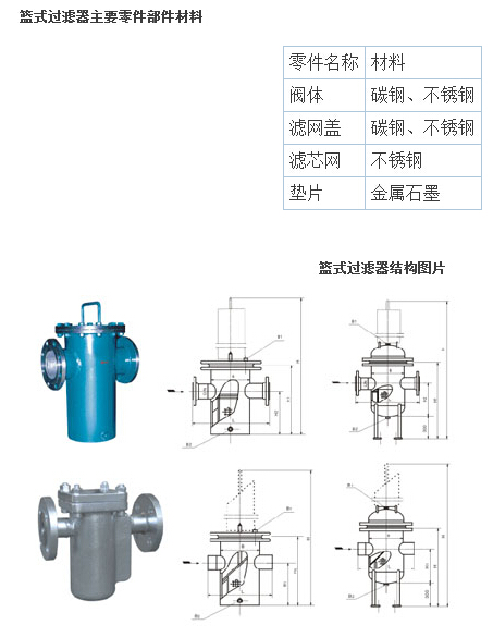 篮式过滤用途 篮式过滤器适用于蒸汽、空气、煤油、水等配管中排出锈渣和异物,用于保护阀门和设备
