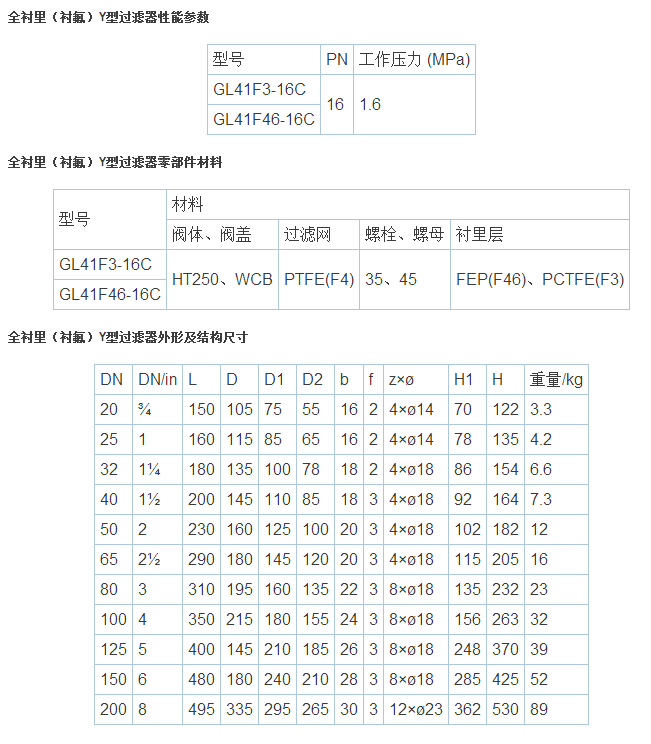 全衬里(衬氟)Y型过滤器说明