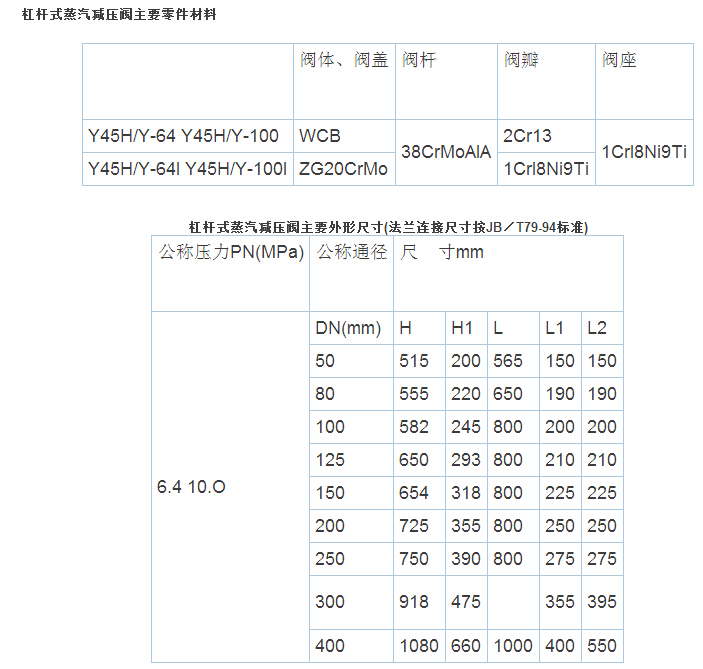 杠杆式减压阀主要配套在减温压装置上,起到调节压力的作用,减压比一般用O.6较合适,选用DKJ一31O电动执行装置,DN500阀选用DKJ一51O电动执行装置较合适。杠杆式蒸汽减压阀主要零件材料
