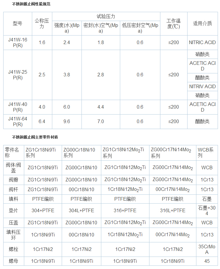 不锈钢截止阀应用规范: