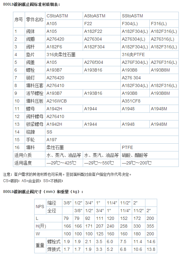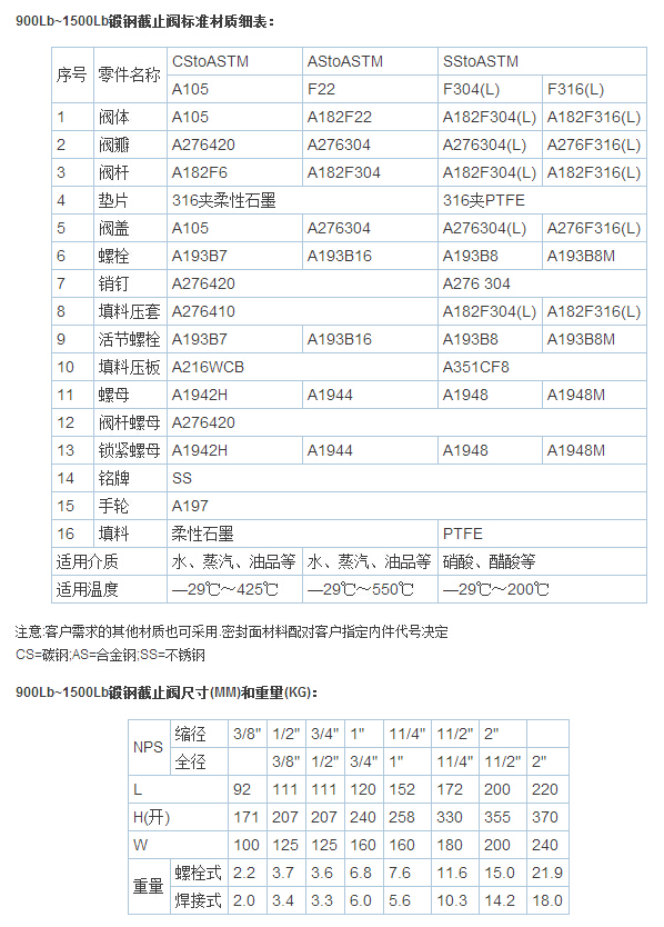 锻钢截止阀适用于 Class150 ~ 2500 、工作温度 -29~425℃(碳钢)或 -29~500℃(不锈钢)的小口径管路上,用于截断或接通管路中的介质,选用不同的材质,可分别适用于水、蒸汽、油品、硝酸、醋酸、氧化性介质、尿素等多种介质。锻钢闸阀流体阻力小,适用的压力、温度范围大,介质流动方向不受限制,密封性能良好。