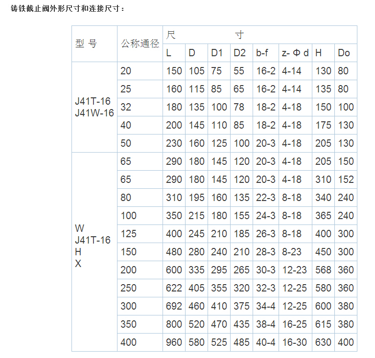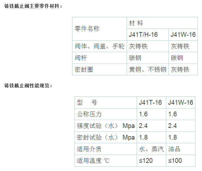 铸铁截止阀用途: 本阀安装在管路上,作启闭用,J41T-16型适用于工作温度≤200℃的水、蒸汽介质管路上,J41W-16型适用于工作温度≤200℃的油品介质管路上。