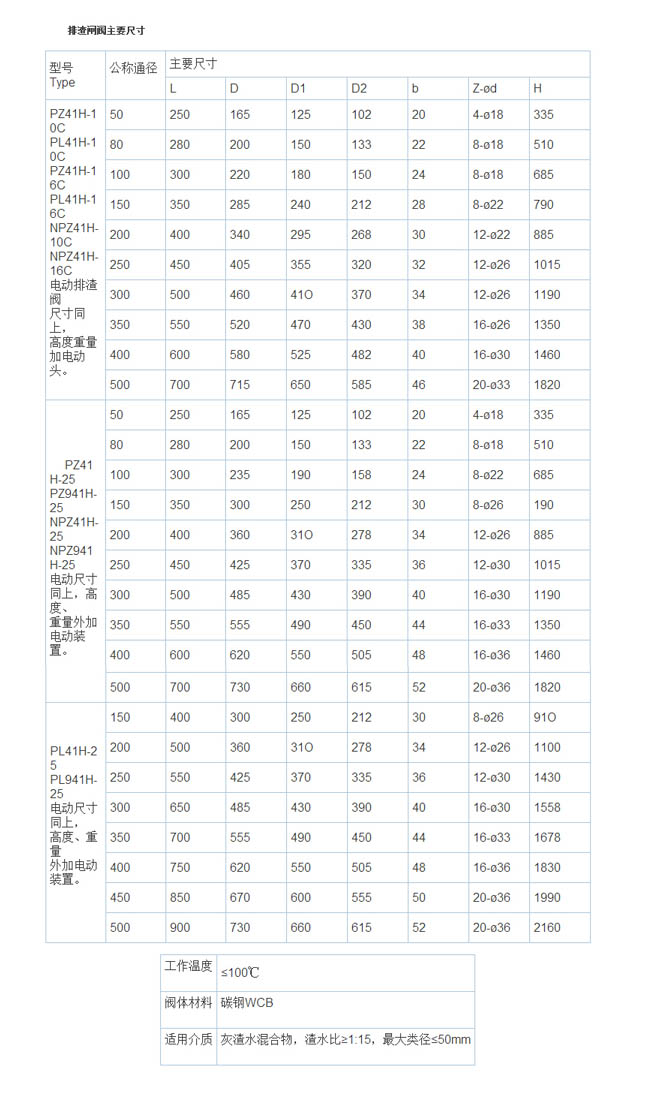 排渣闸阀的主要标准: