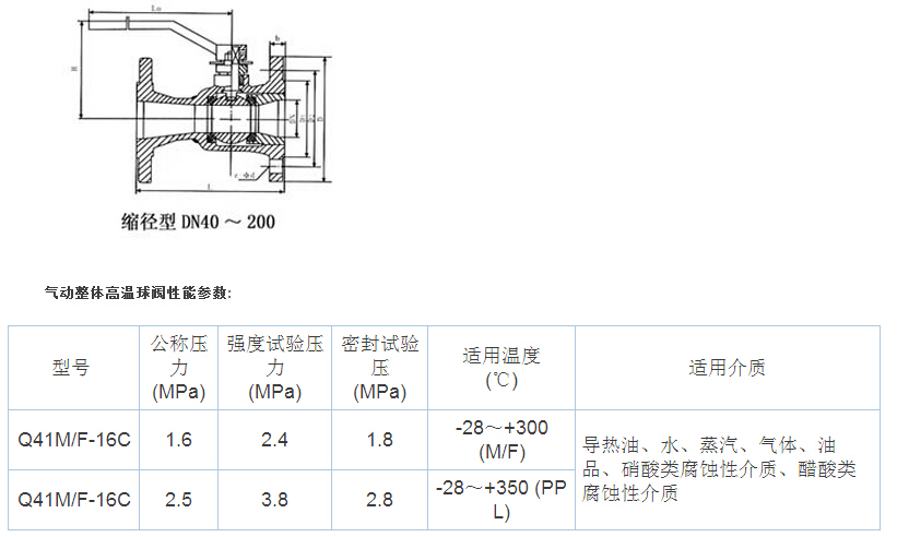 本公司设计整体高温球阀是采用新型密封材料为阀座,经同类产品聚四氟乙烯做密封的球阀,使用寿命提高了3-5倍。具有性能稳定、密封可靠、磨擦力小、开关轻便、耐高温、耐磨、耐油、耐腐蚀、使用寿命长等优点,“三精”牌高温球阀与截止阀、柱塞阀、排污阀,结构长度相符,扩大了球阀使用范围,广泛用于石油、化工、橡胶、造纸、制药等行业,可替代截止阀、柱塞阀、快速排污阀。适用介质:水、蒸汽、导热油等酸类,使用温度:≤350℃