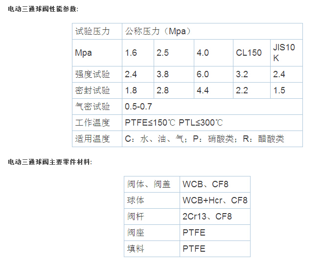 电动三通球阀可分为L形和T形,L形(Q44F)三通球阀用于介质流向的切换,能使相互垂直的两个通道连接;T形(Q45F)三通球阀用于介质分流、合流及流向切换。T形三通可以使三个通道相互连通或使其中的两个通道连通。三通球阀一般采用两阀座结构,亦可根据用户要求采用四阀座结构。