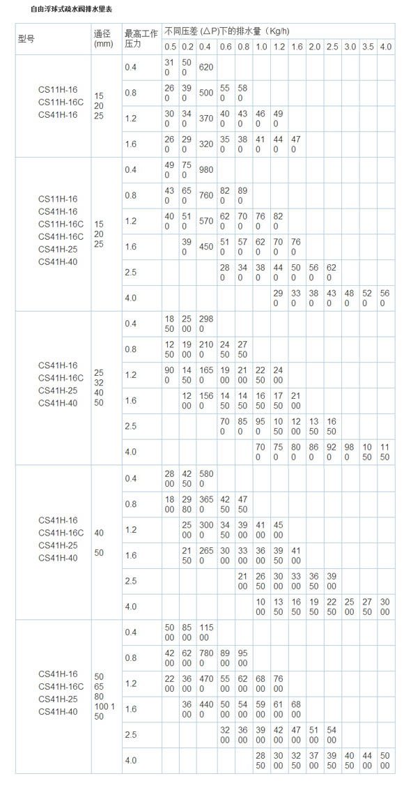 自由浮球式疏水阀规格及技术参数 :