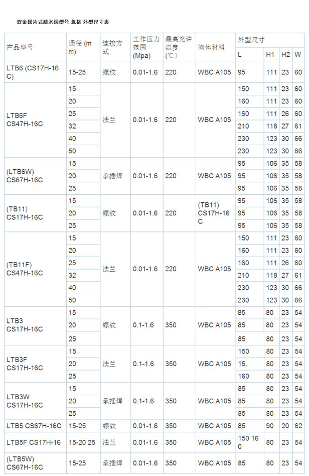 双金属片式疏水阀是热静力型疏水阀中结构最坚固的疏水阀。它的优点是:不怕水击,耐高压,体积小,重量轻,不怕冻,能自动排空气,任意位置都可安装;背压率大于 80% 。