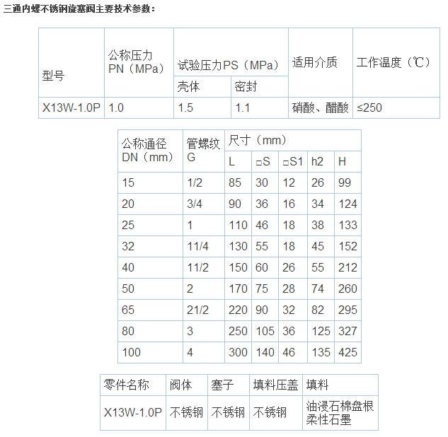 二通内螺不锈钢旋塞阀的启闭件是一个有孔的圆柱体,圆柱体与阀杆绕垂直于通道的轴线旋转,从而达到启闭通道的目的。主要供开启和关闭管道和设备介质之用。该阀主要优点:适用于经常操作,启闭迅速、轻便。流体阻力小。结构简单,相对体积小,重量轻,便于维修。密封性能好,不受安装方向的限制,介质的流向可任意。无振动,噪声小。