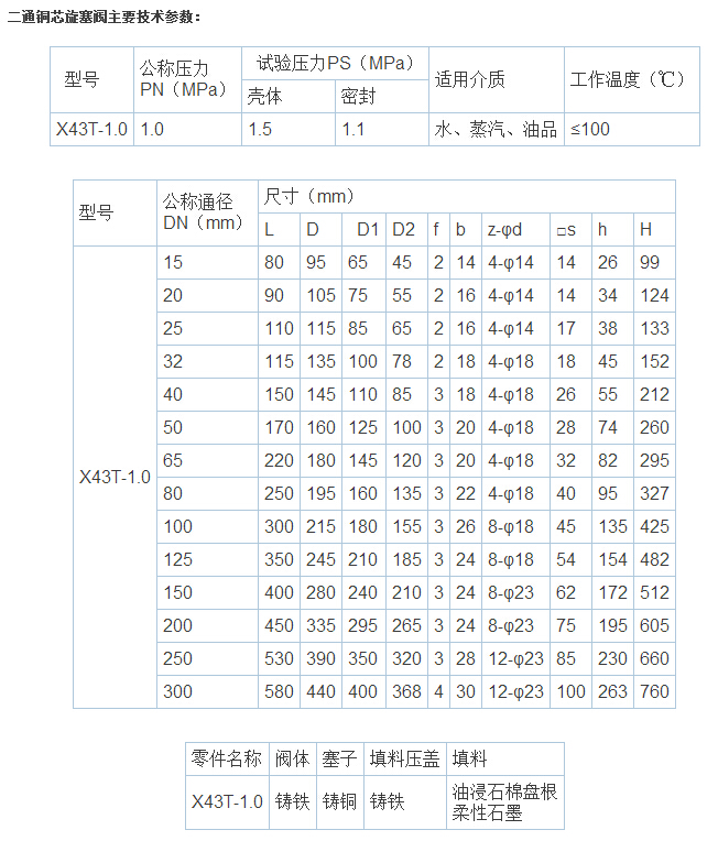 二通铜芯旋塞阀二通铜芯旋塞阀适用范围城建、化工、冶金、石油、制药、食品、饮料、环保.主要性能规范适用介质水、蒸汽、油品,工作温度(℃)≤100