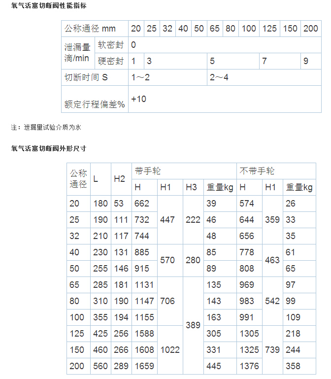 氧气活塞切断阀